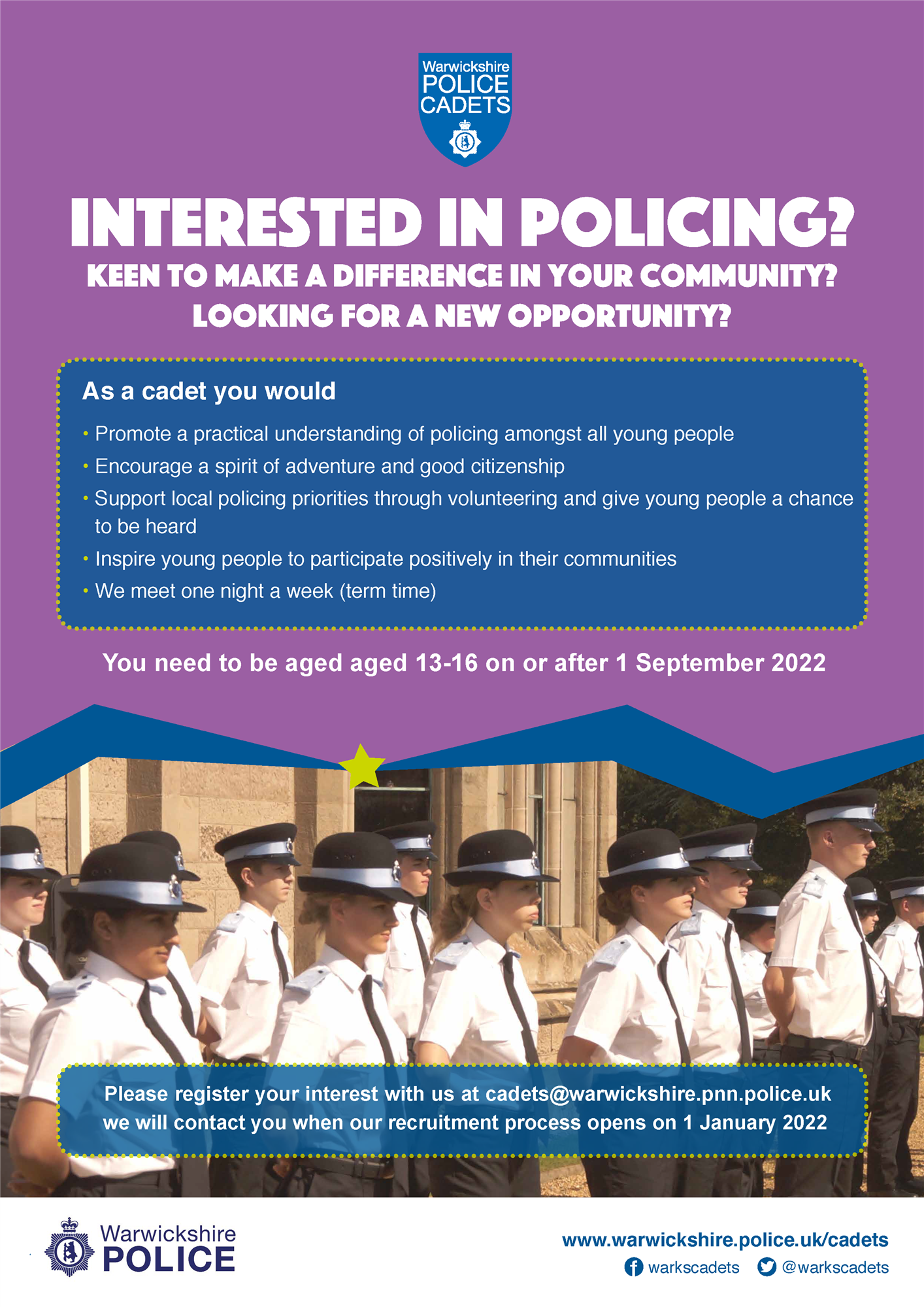 Please find here the poster that may help you to promote the Police cadet scheme in your school.