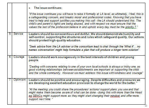 Last week focus was on using the framework to explore the dilemmas organisations face when dealing with the most challenging behaviour. We hope it has helped start your journey on using the ethical leadership framework to navigate the moral maze.